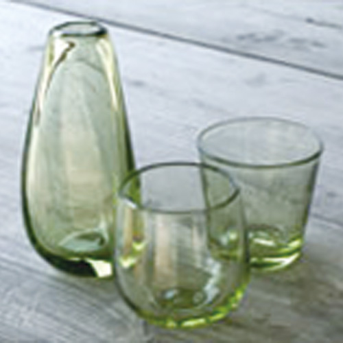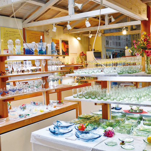 プロの職人による吹きガラス制作体験。約3ヶ月ごとに内貫入ガラス、みどり玄武岩ガラスと素材が変わる。