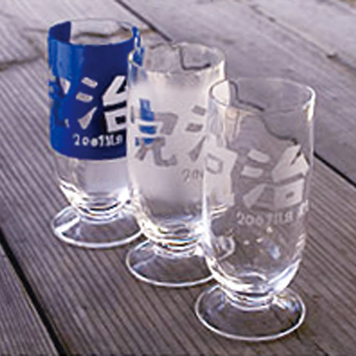 砂吹き技法による彫刻体験。マスキングし、砂を高圧力で吹き付け模様を作る。